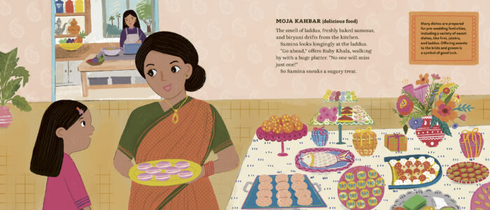 FZ: I hope readers come away with a sense of joy, warmth, and curiosity. At its heart, Samina Goes to a Wedding is a celebration—of family, of culture, of tradition, and of the small details that make special occasions unforgettable. For readers who may be unfamiliar with South Asian weddings and traditions, I hope the story opens a door into a new cultural experience in an inviting and accessible way. Through the patterns, clothing, jewelry, and celebration, I hope children see that while traditions may look different, the feelings underneath—excitement, nervousness, love, belonging—are universal.