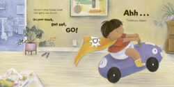 HL: This entire book was a joy to create, Dash flew out of my pencil and onto the page! Loretta’s text is fun and lively and I wanted to capture that in the illustrations. I loved creating a sub narrative with Dash’s sidekick kitty. I also enjoyed adding in little background details for the reader to find.