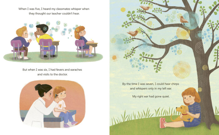 NH: The best part about writing this story was feeling that it might help even one child who was facing cochlear implant surgery, or more generally, any type of surgery or a hospital stay. To have the surgery was daunting even for an adult, so I hoped to demystify it a bit for kids by examining the whole process. The most challenging part of the writing was that the surgery for a child wouldn’t be exactly as it had been for me, as an adult. Luckily, the kind audiologists at my clinic read over my manuscript and then sent it to the audiologists at the children’s hospital in Vancouver where children have the surgery, to make sure the text and illustrations reflected how the surgery process would go for a child.