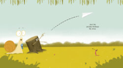 Naseem Hrab: I love exploring different kinds of bravery, especially everyday kinds like speaking up, sharing our feelings, and standing up for what we believe in. So, in How to Be Brave Like a Snail, Snail needs courage to help him enter the big paper airplane contest, and Stump needs to find the courage to tell Snail that he’s upset that Snail did better than him in the contest. Even though there’s a bit of friction between them, they find a way to work through their feelings—and even let them go!